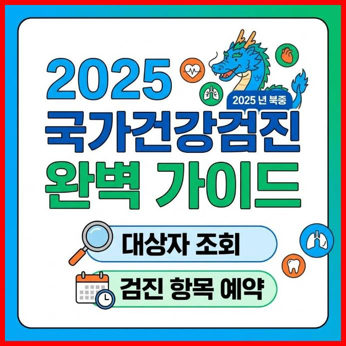 관련 태그: #2025국가건강검진 #대상자조회 #건강검진예약 #국민건강보험공단 #암검진주기 #직장인건강검진 #The건강보험 #일반건강검진 #건강검진금식 #무료건강검진